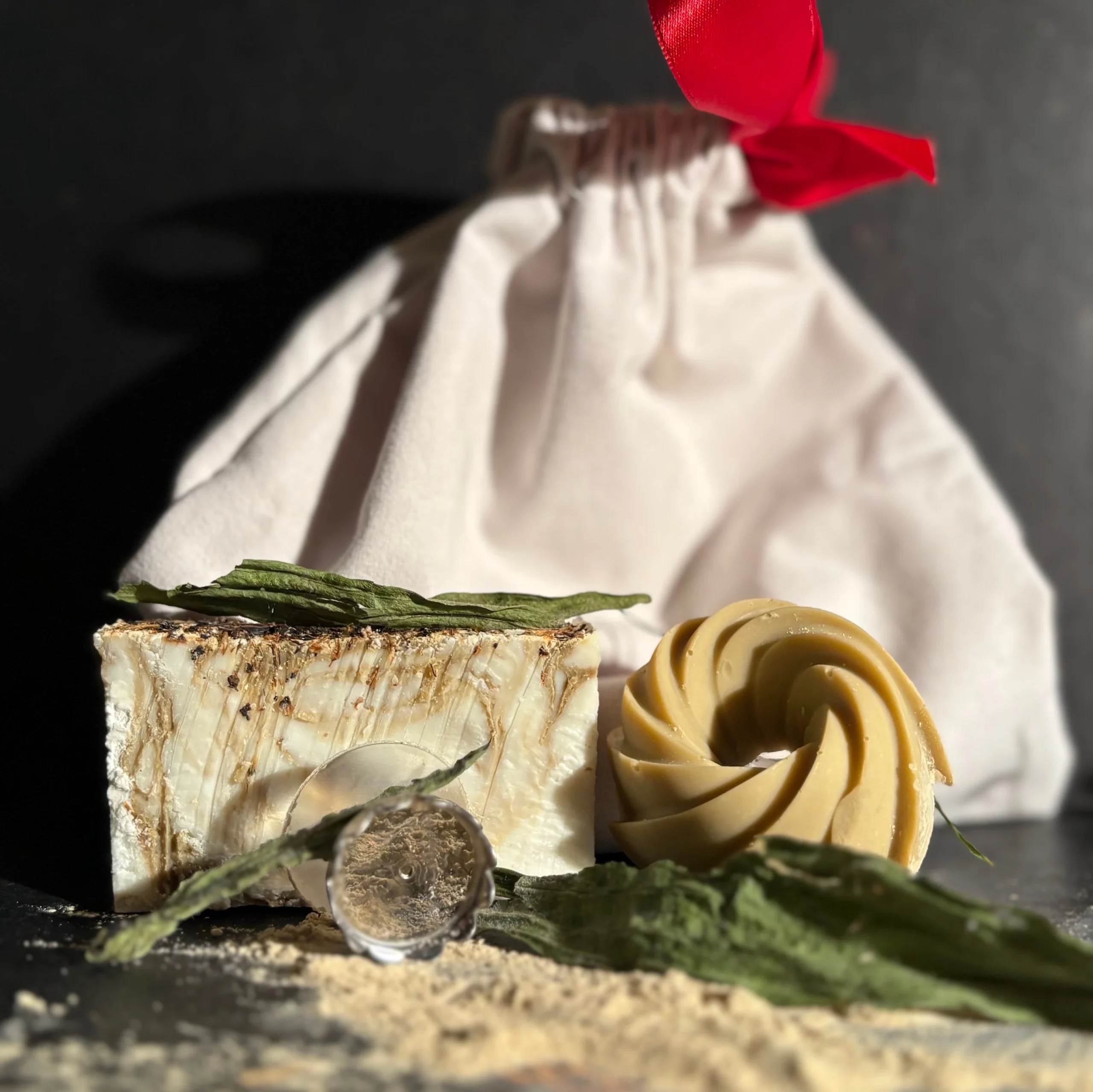 Sodium olivate, sodium sweet almondate, Aqua, Glycerin, Olea europeae fruit oil, Illite, Urtica dioica extract in prunus amygdalus dulcis oil, Kaolin, Montmorillonite, Tocopherol, Sodium sunflowerseedate, Helianthus annuus seed oil